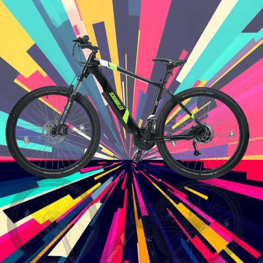 Electric Mountain Bikes (E-MTBs) are off-road bicycles equipped with an electric motor to assist pedaling, making climbs easier and rides longer. They combine rugged mountain bike features—like suspension, knobby tyres, and durable frames—with a battery-powered motor for extra power on tough trails.