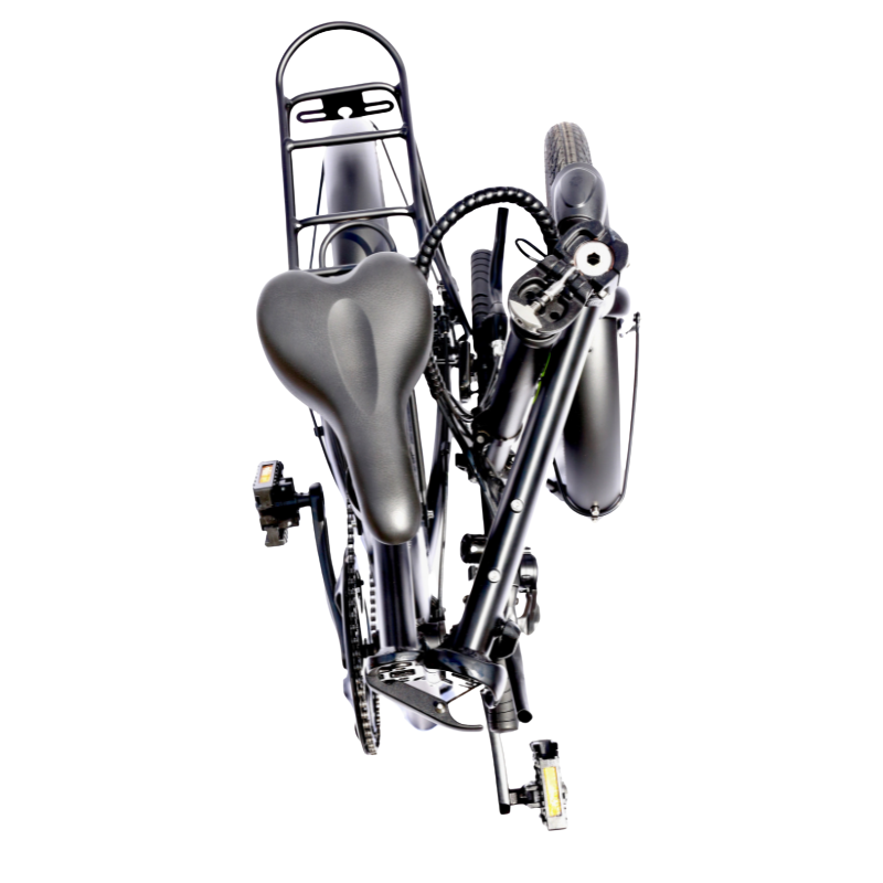 For added convenience, the secure folding system with built-in magnets keeps the bike compact and firmly held together when folded, making storage and transport simple at home, in a vehicle, or on the move.