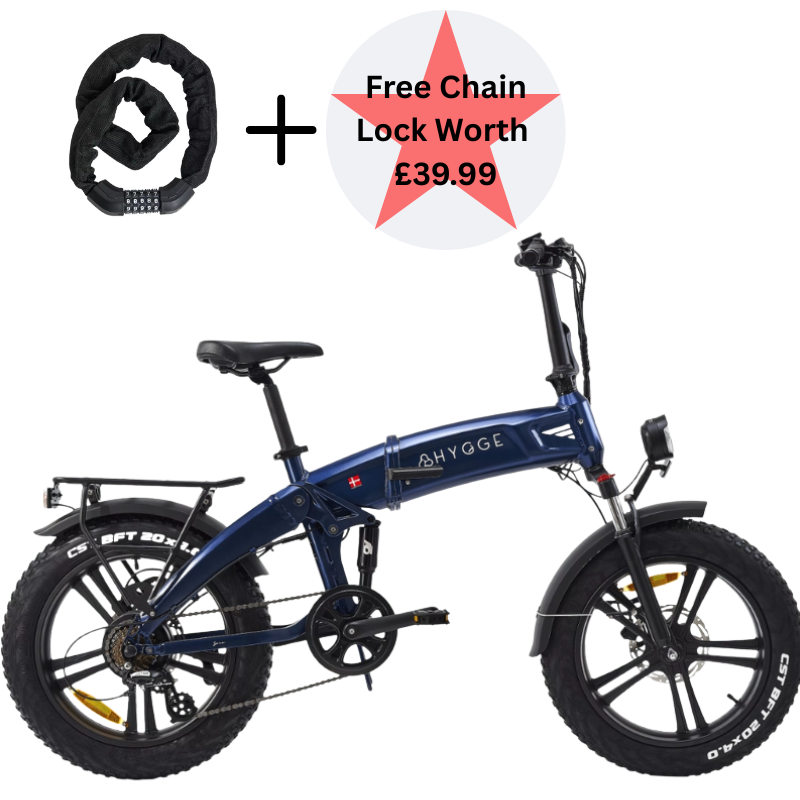 HYGGE SORO Foldable Fat Tyre Electric Bike - Top Speed 15.5mph | 43mi Range | 48V 14Ah Battery | 250W Power - Hub Motor